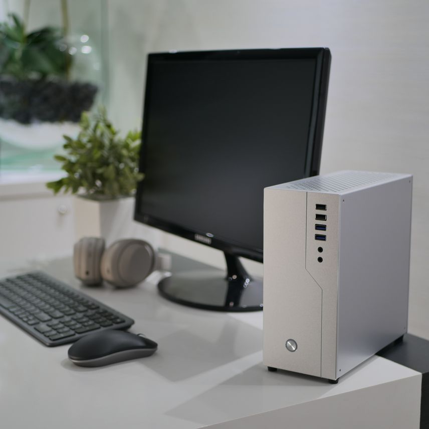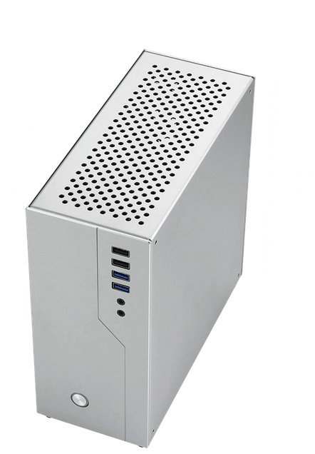 Para lograr el mínimo tamaño de nuestros equipos de la línea Alpha, utilizamos componentes del estándar más pequeño (ITX). Adicionalmente, vamos un paso más allá e incorporamos una fuente de poder externa, similar a un portátil, para reducir incluso más el tamaño.